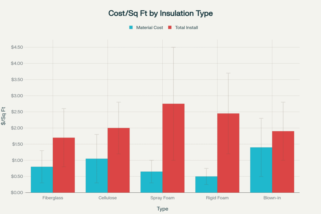 Insulation Cost Comparison: Material vs. Total Installed Costs Per Square Foot