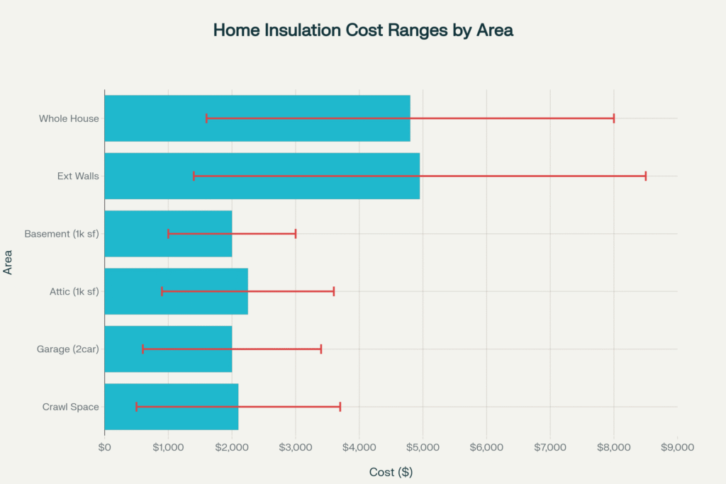 The average cost to insulate a house ranges from $1,600 to $8,000, with most homeowners paying around $1,855 for a typical project. Costs vary significantly based on insulation type, area size, and installation complexity.