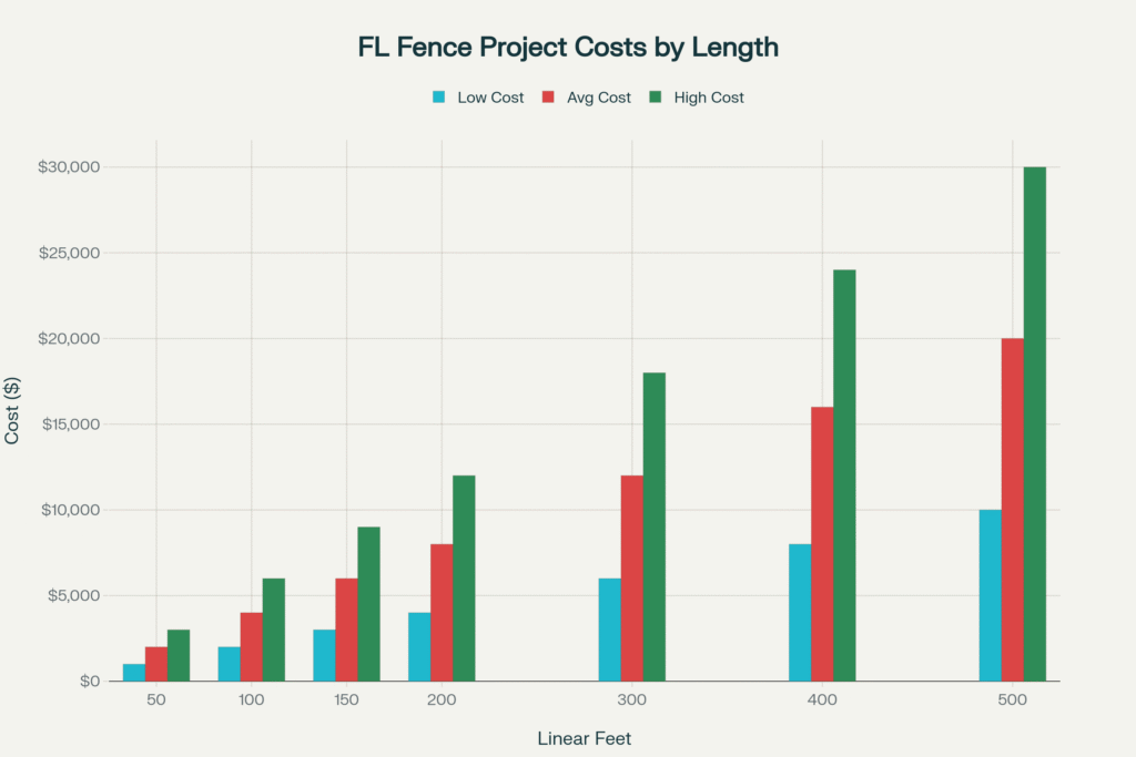 Florida fence project costs by linear footage (2025)