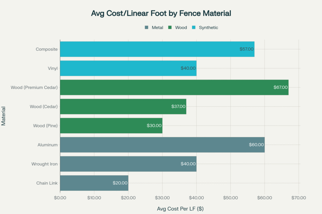 Wood Fencing: Costs vary significantly by wood type: